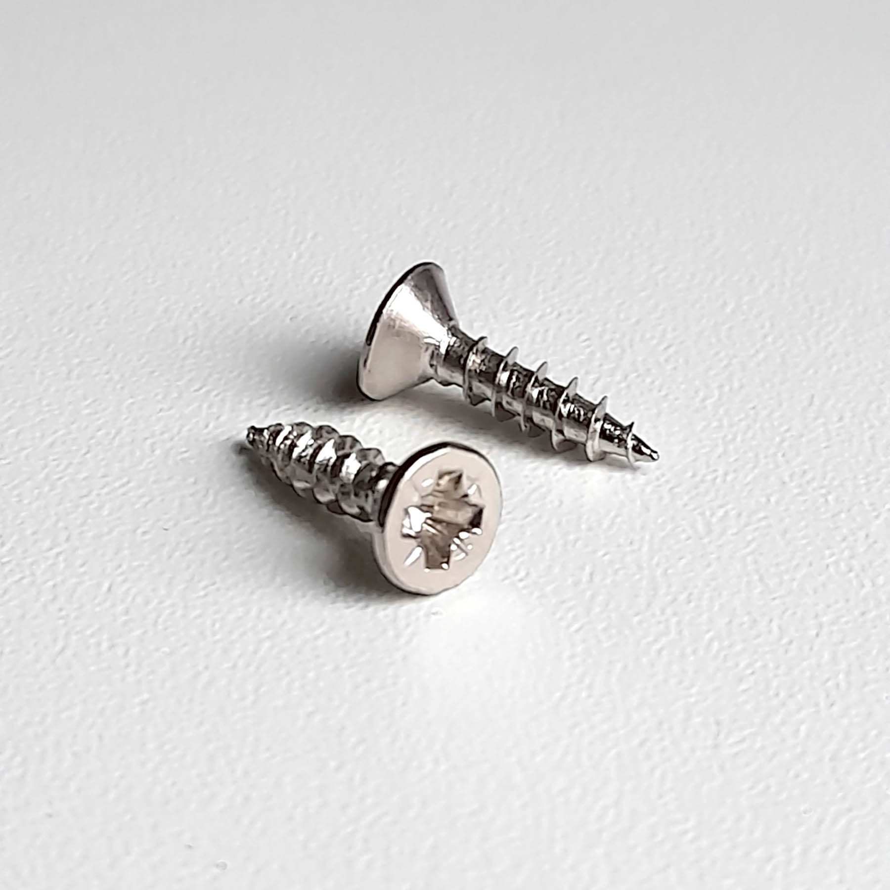 Metallschraube zur Verschraubung der Schraubtöpfe „älterer Schraubtopfbänder“ mit Türblättern. Mit Kreuzschlitz.